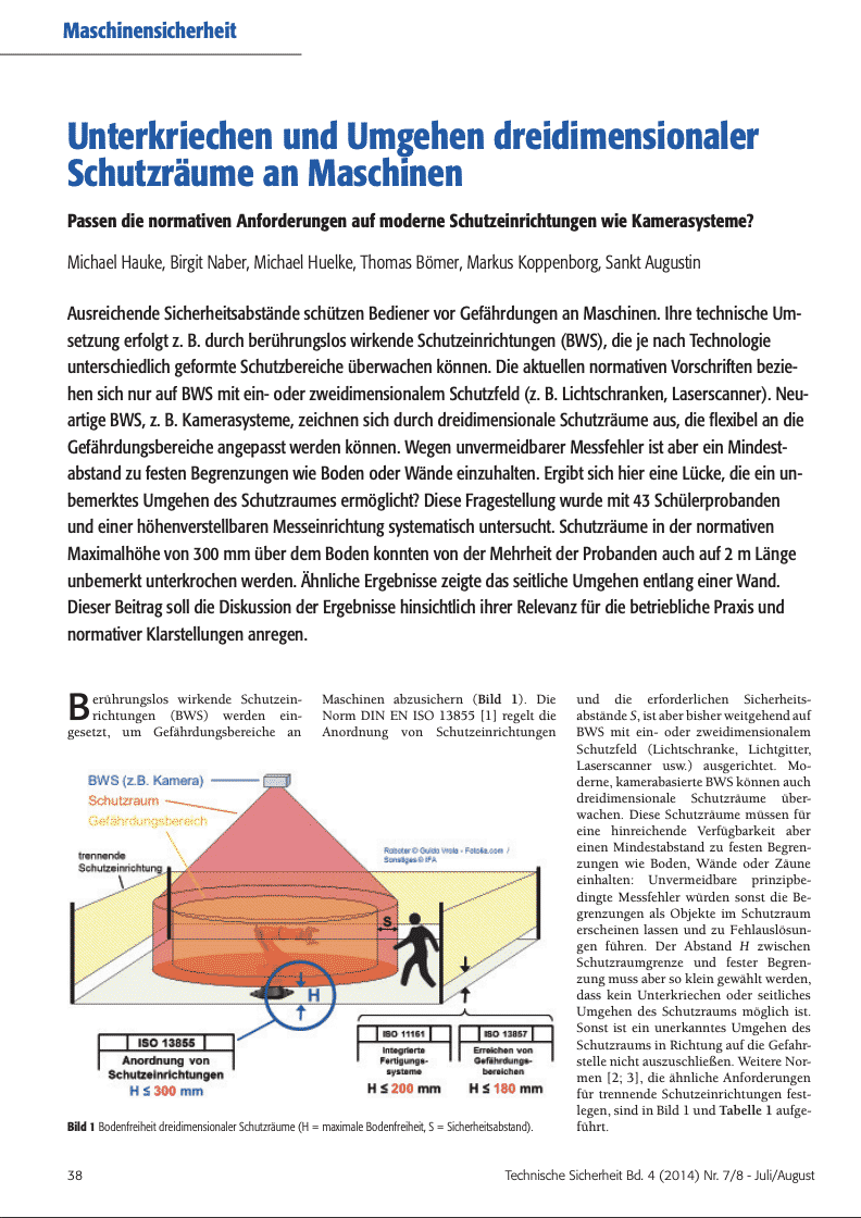 Met nieuwe beveiligingsapparatuur, zoals camera’s, kan via 3-dimensionele beelden een ruimte om een machine beveiligd worden. De effectiviteit van deze beveiligingen is onderzocht. Dit artikel geeft de resultaten van het onderzoek weer.