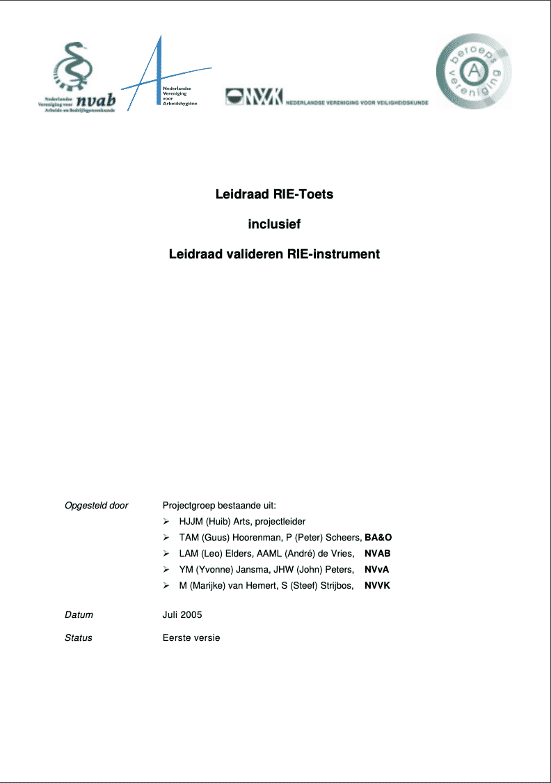 Deze leidraad beschrijft de toetsing van de risico-inventarisatie en -evaluatie.