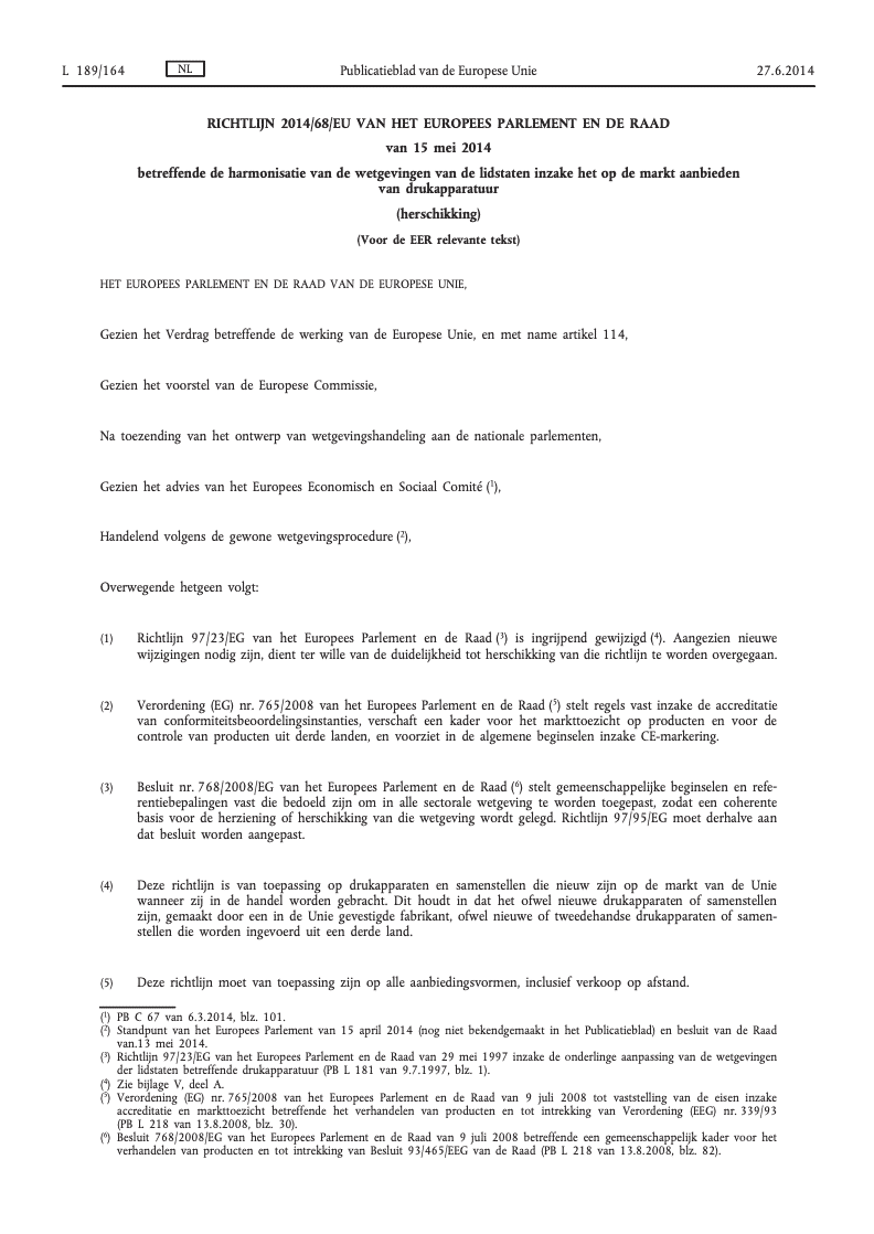 De Europese richtlijn Arbeidsmiddelen die is opgenomen in de Arbowet en met name het Arbobesluit hoofdstuk 7 of in de Codex voor Welzijn op het werk.