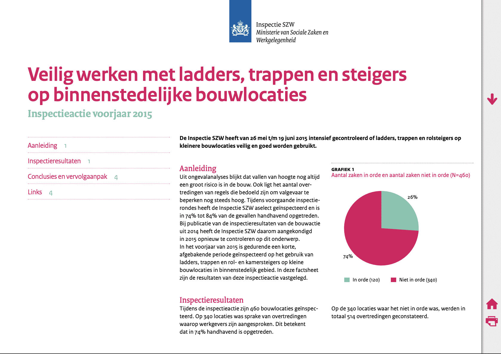 Dit rapport is een weergave van de inspecties door ISZW (arbeidsinspectie) in 2015 in het kader inspecties op de bouwplaatsen, waarbij o.a. naar valgevaar is gekeken.